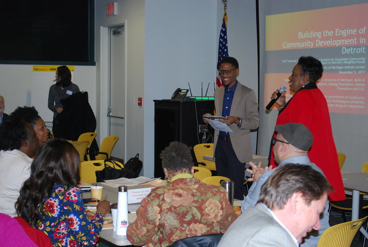 Photographs from the 2017 Summit held on December 5 at the UM Detroit Center. One hundred and twenty people representing 83 stakeholder organizations came together for a full day of presentations, discussion and debate on national research results, the CDAD d[com] Tool, the Neighborhood Vitality Success Framework, academic and career pathways into community development, a capacity building “clearinghouse” and an update to the working definition of community development.